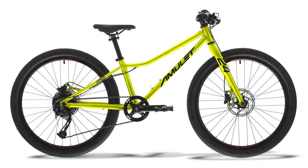 AMULET 24 Youngster disc (9,3 kg) s hydraulickými brzdami Shimano posouvá hranice juniorského bikingu. Originální 9rychlostní sada Shimano Alivio a ergonomický hliníkový rám v metalických barvách tvoří stroj pro budoucí šampiony bez kompromisů.