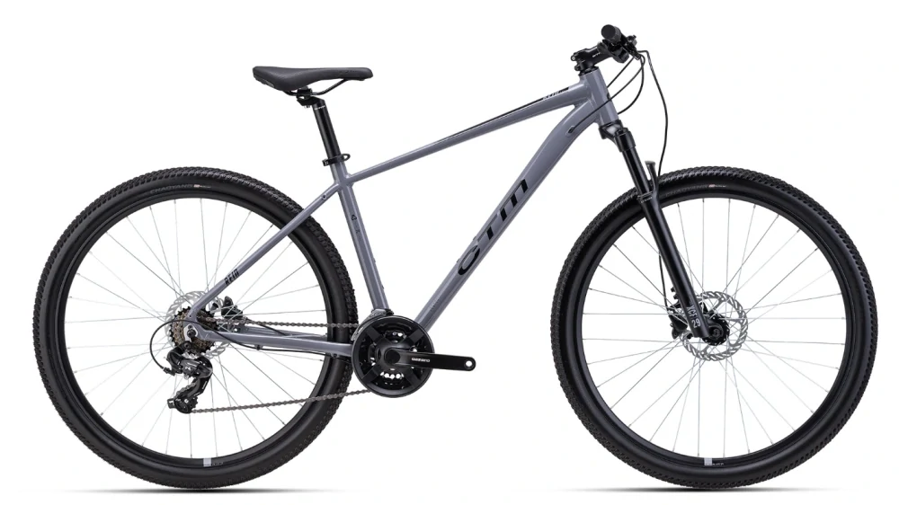 Přední odpružená vidlice CTM XCF s 100 mm zdvihu zajišťuje komfort při jízdě po nerovném povrchu a lepší kontrolu nad kolem. Hydraulické brzdy Shimano MT200 poskytují silný a přesný brzdný výkon v každé situaci.