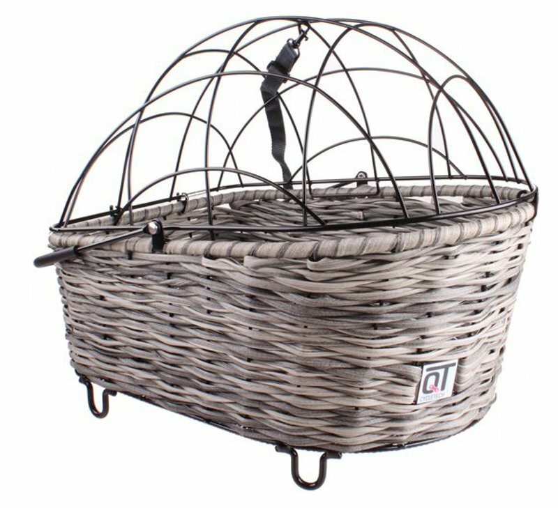 Komfortní koš na kolo s ochrannou klecí pro montáž na zadní nebo přední nosič jízdního kola.