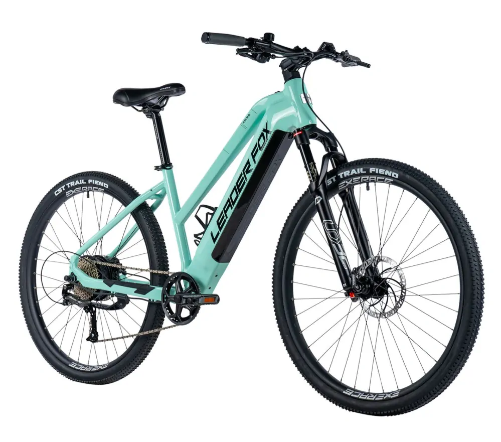 Novinka. Dámské horské elektrokolo Leader Fox ARIMO 29" s hliníkovým rámem, odpruženou přední vidlicí, kotoučovými brzdami. ARIMO je zde pro ty, kteří touží po vzrušení a zábavě během jízdy po stezce i v terénu.