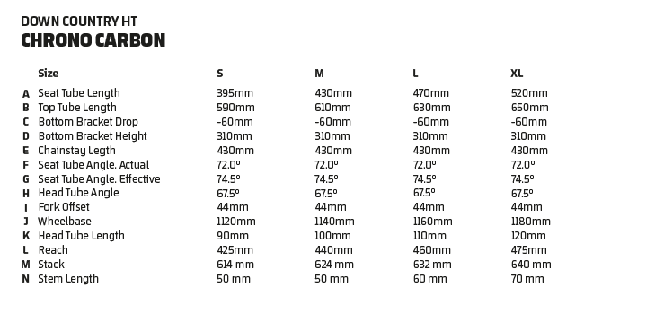 Chrono 29 Stealth full Carbon, XC Forward Geometry, 73mm BSA bottom bracket, tapered head tube, HHG Internal Cable routing, Boost 12x148mm rear axle, dedicated 1X drivetrain design, Flatmount brake compatible,