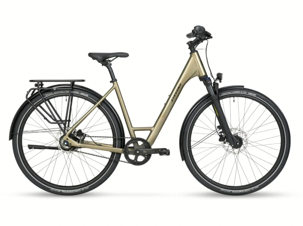 STEVENS Aviolo 5.2 nabízí ideální vstup do světa trekingových kol s nízkými nároky na údržbu a vysokou mírou pohodlí. Hliníkový rám v kombinaci s odpruženou vidlicí SR Suntour NVX32 (63 mm) zajišťuje komfortní jízdu i na hrubším povrchu. O spolehlivé řazení se stará nábojová převodovka Shimano Nexus s osmi rychlostmi a bezúdržbovým řemenem Gates CDN. Kolo je vybaveno výkonným LED osvětlením napájeným dynamem v předním náboji, hydraulickými kotoučovými brzdami Tektro a 47mm plášti Continental pro jistý kontakt s vozovkou. Díky dětskému nosiči Snap-it 2.0 (nosnost 30 kg) a široké nabídce velikostí včetně dámských rámů se Aviolo 5.2 hodí opravdu pro každého.
