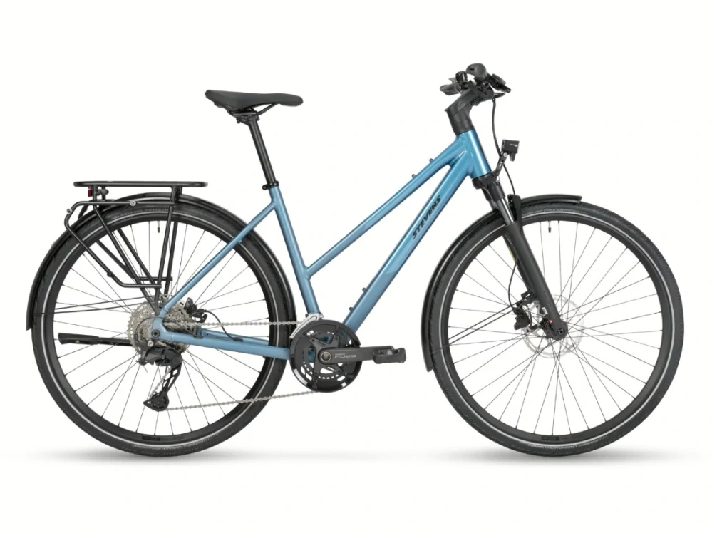 STEVENS Aviolo 8.1 kombinuje komfort a praktičnost s prémiovou výbavou, ideální pro každodenní využití i delší výlety. Lehký hliníkový rám je dostupný v provedení HT, LT a v široké škále velikostí. O pohodlnou jízdu se stará vzduchová vidlice SR Suntour NRX se zdvihem 60 mm, zatímco 2×11 převodový systém Shimano CUES U6000 umožňuje hladké řazení i v náročnějším terénu. Tektro hydraulické brzdy dodávají jistotu v každé situaci a spolehlivé pláště Schwalbe Marathon Efficiency zaručí pohodlí i na delších trasách. Nechybí ani výkonné LED osvětlení s denním svícením.