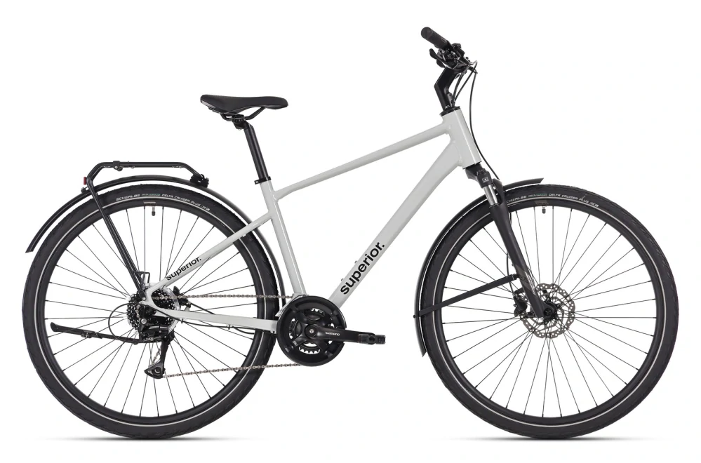 Superior BLOX 6.2 T je praktické trekingové kolo určené pro každodenní dojíždění, městský provoz i pohodové vyjížďky po cyklostezkách. Lehký hliníkový rám s touring geometrií podporuje vzpřímenou a komfortní jízdní pozici, která zajišťuje dobrý přehled o okolí a přirozený posed bez zbytečné zátěže zad a ramen. Díky spolehlivému pohonu Shimano, hydraulickým kotoučovým brzdám a kompletní městské výbavě je BLOX 6.2 T ideálním kolem pro každodenní pohyb po městě i okolí, a to za každého počasí.
